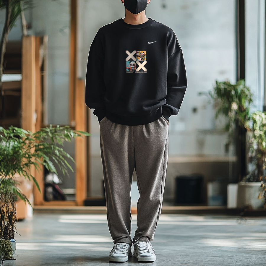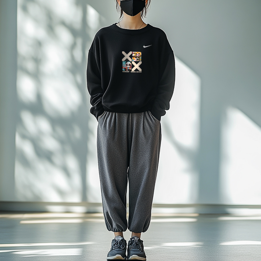 Этот уникальный дизайн включает в себя оригинальную толстовку с круглым вырезом и длинным рукавом с принтом логотипа Nike черного цвета. Оригинальный дизайн, доступный эксклюзивно на Dewu. Высококачественный, изысканный принт значительно снижает вероятность того, что вы наденете такой же наряд, как у кого-то другого.