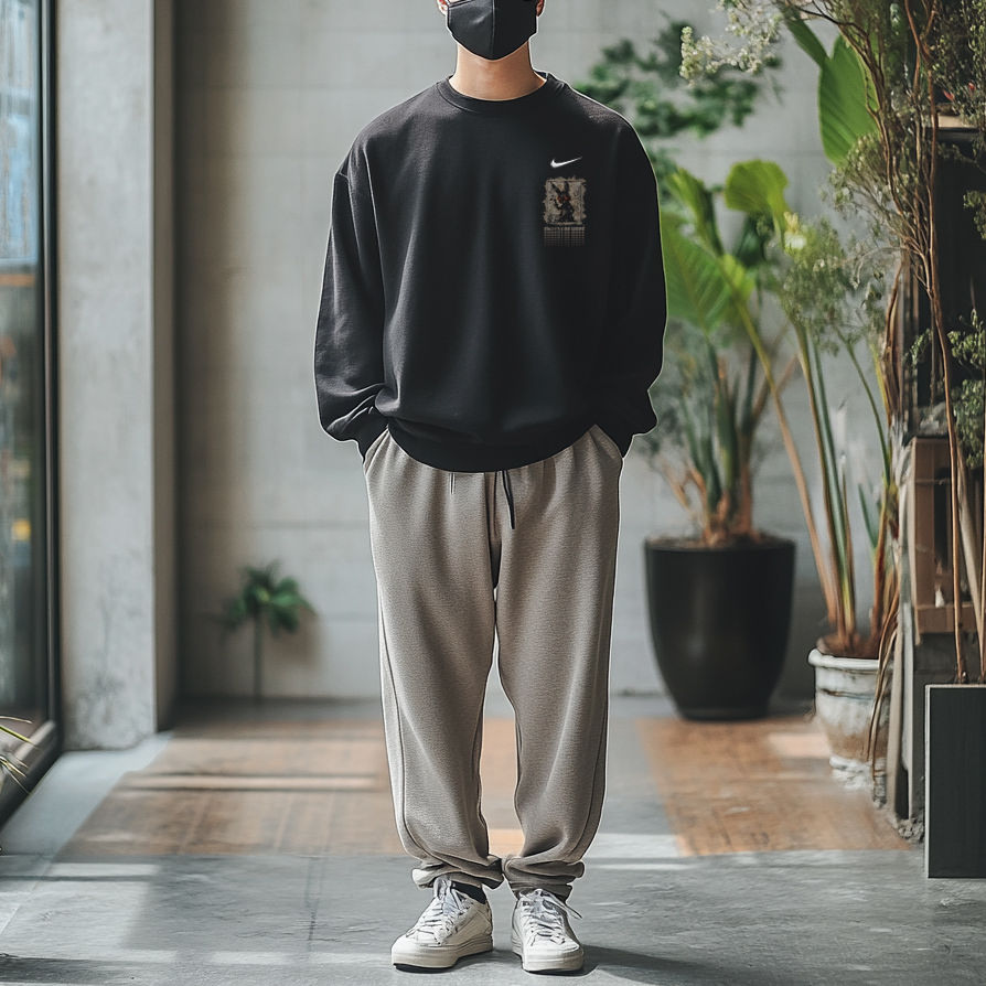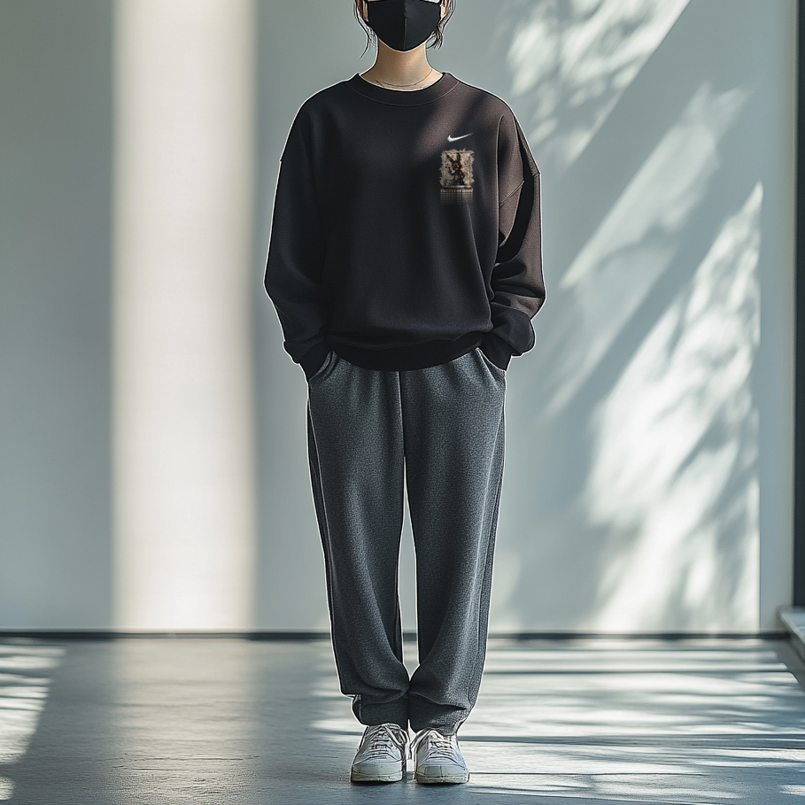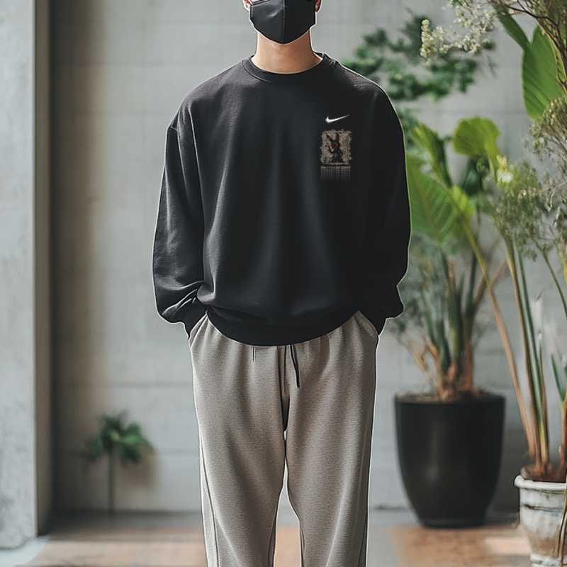 Этот уникальный дизайн включает в себя оригинальную толстовку с круглым вырезом и длинным рукавом с принтом логотипа Nike черного цвета. Оригинальный дизайн, доступный эксклюзивно на Dewu. Высококачественный, изысканный принт значительно снижает вероятность того, что вы наденете такой же наряд, как у кого-то другого.