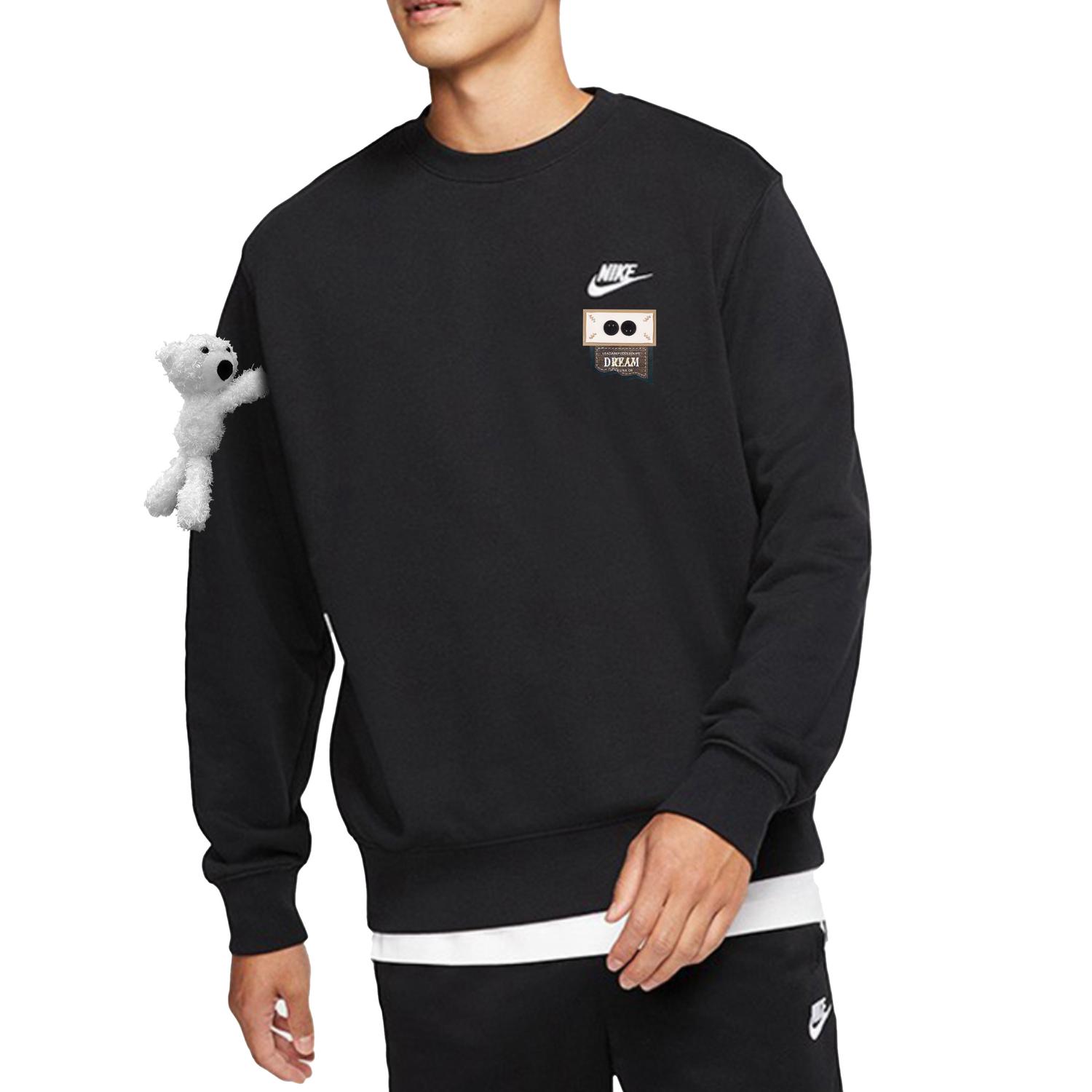 Эта модель, сшитая на заказ, основана на оригинальной мужской толстовке Nike с длинными рукавами и круглым вырезом, весеннего стиля, черного цвета. Неровная тканевая нашивка добавляет уникальный штрих, съемная плюшевая игрушка очаровательна, а ручная вышивка - просто изысканна!