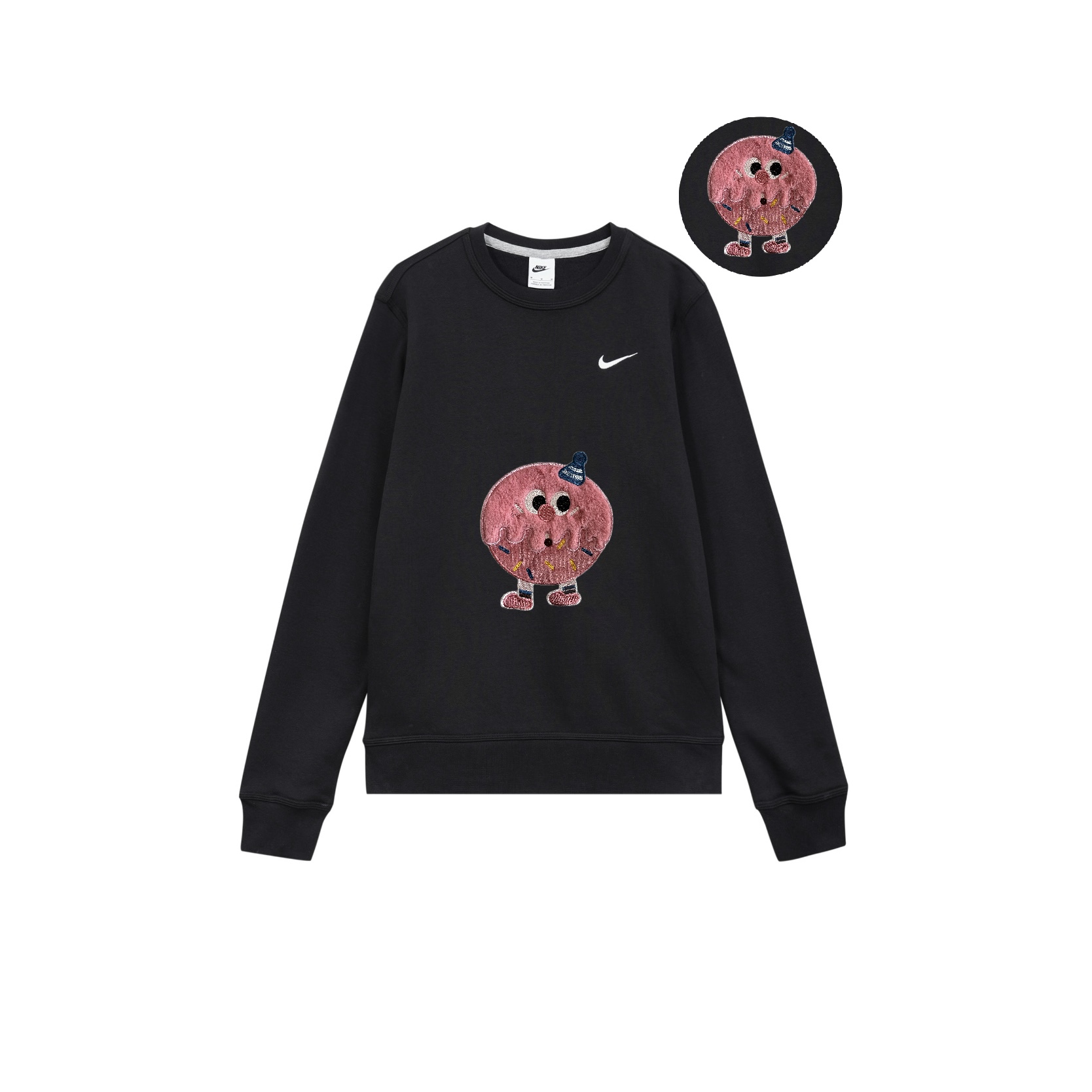 В основе этой модели, изготовленной на заказ, лежит черная флисовая толстовка Nike с круглым вырезом (артикул 623459-010), к которой добавлены вышитые украшения. Вышитые узоры на передней части каждой модели, изготовленной на заказ, добавляются вручную, поштучно, поэтому расположение узора на каждом изделии может незначительно отличаться. В связи с особенностями изготовления и материалов, изделие следует беречь от царапин, царапин острыми предметами, длительного замачивания и сушки при высоких температурах.