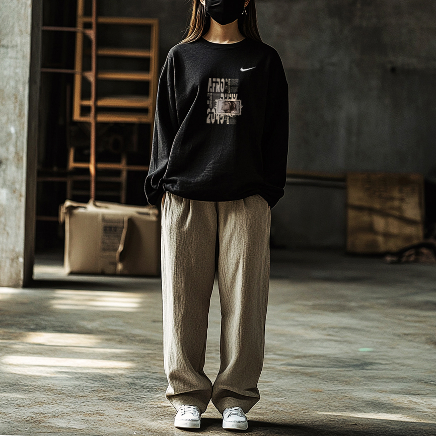 Этот уникальный дизайн включает в себя оригинальную толстовку с круглым вырезом и длинным рукавом с принтом логотипа Nike черного цвета. Оригинальный дизайн, доступный эксклюзивно на Dewu. Высококачественный, изысканный принт значительно снижает вероятность того, что вы наденете такой же наряд, как у кого-то другого.