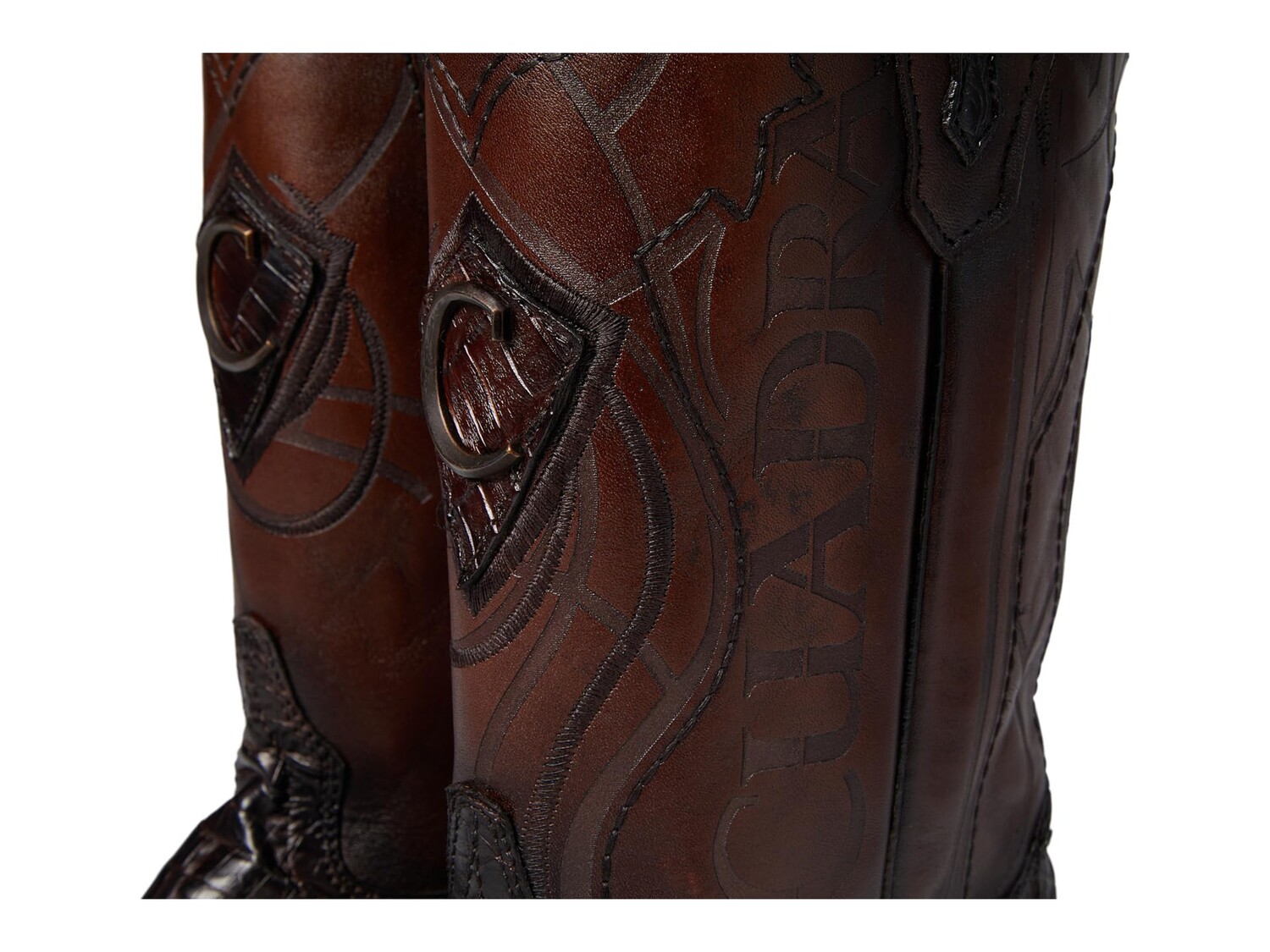 Улучшите свой образ, добавив эффектные высокие ботинки Cuadra CU456 с тиснением под кожу крокодила на союзке и замысловатой отделкой голенища. Верх из медного каймана с лазерным узором. Подкладка из воловьей кожи и съемная кожаная стелька. Модель без застежки с петлями для подтягивания по бокам. Вышивка Квадратный носок.Силуэт длиной до колена.Кожаная подошва с резиновой вставкой.Импортный.