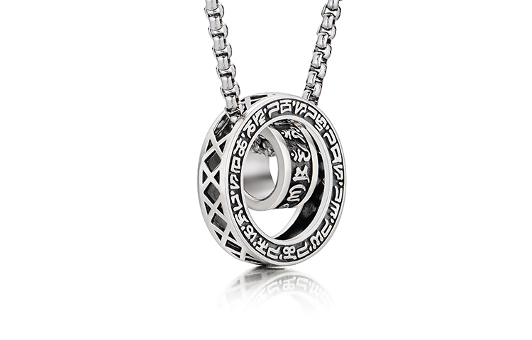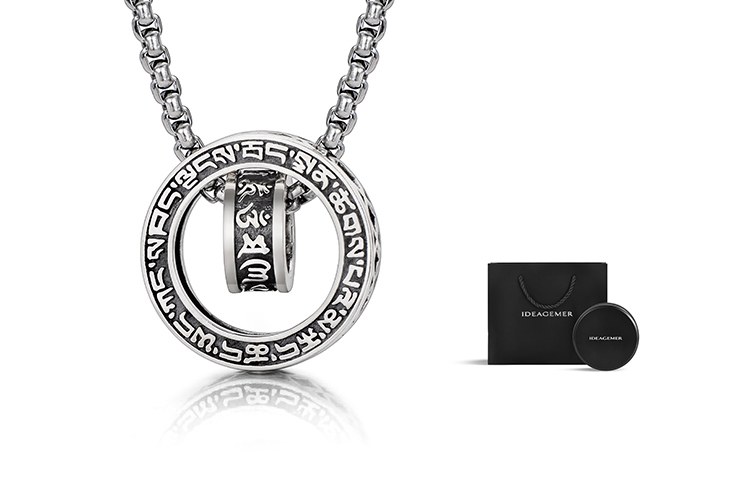 Цвет: серебряный кулон S925 "Мантра" с шестью символами, стальная цепочка [Коробка]