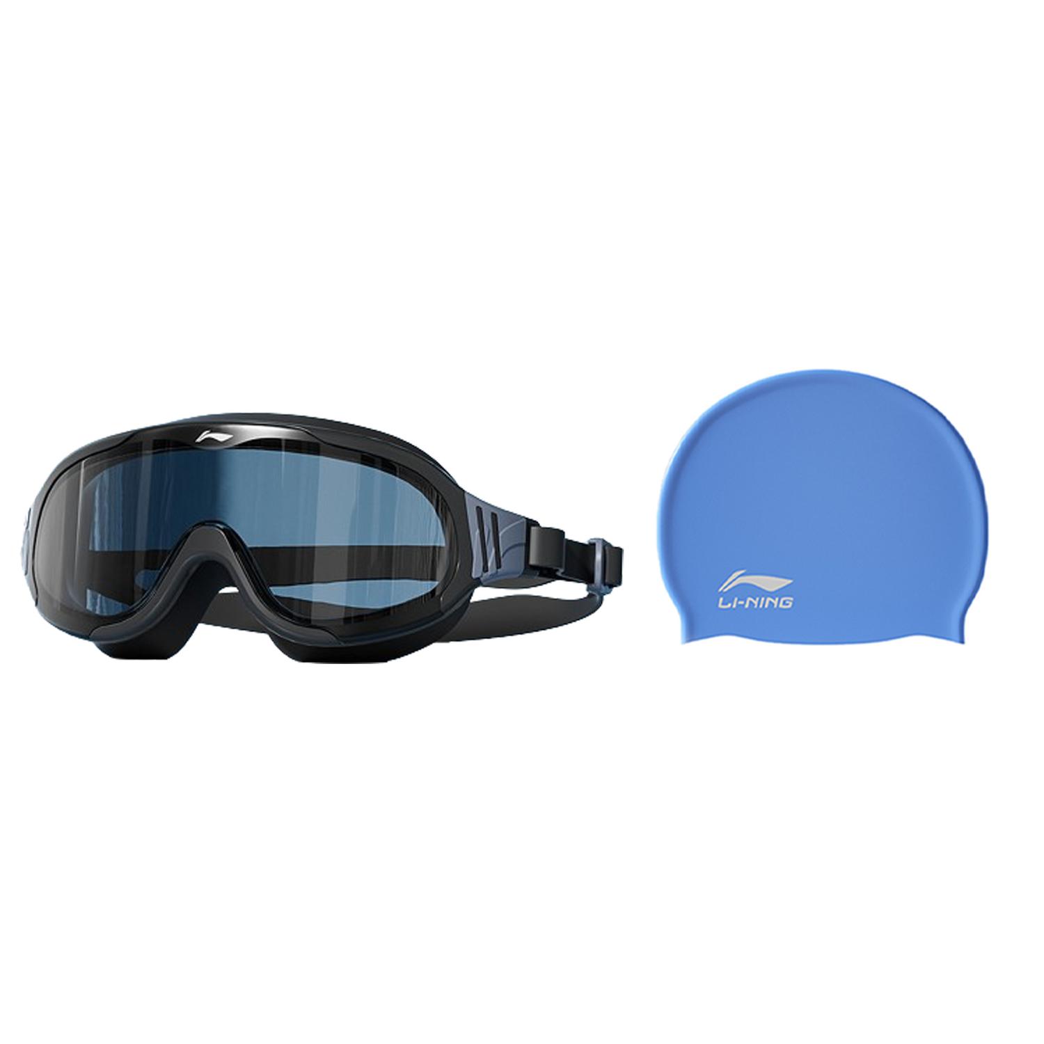 Коробка/набор: черные очки для плавания + розовая шапочка для плавания