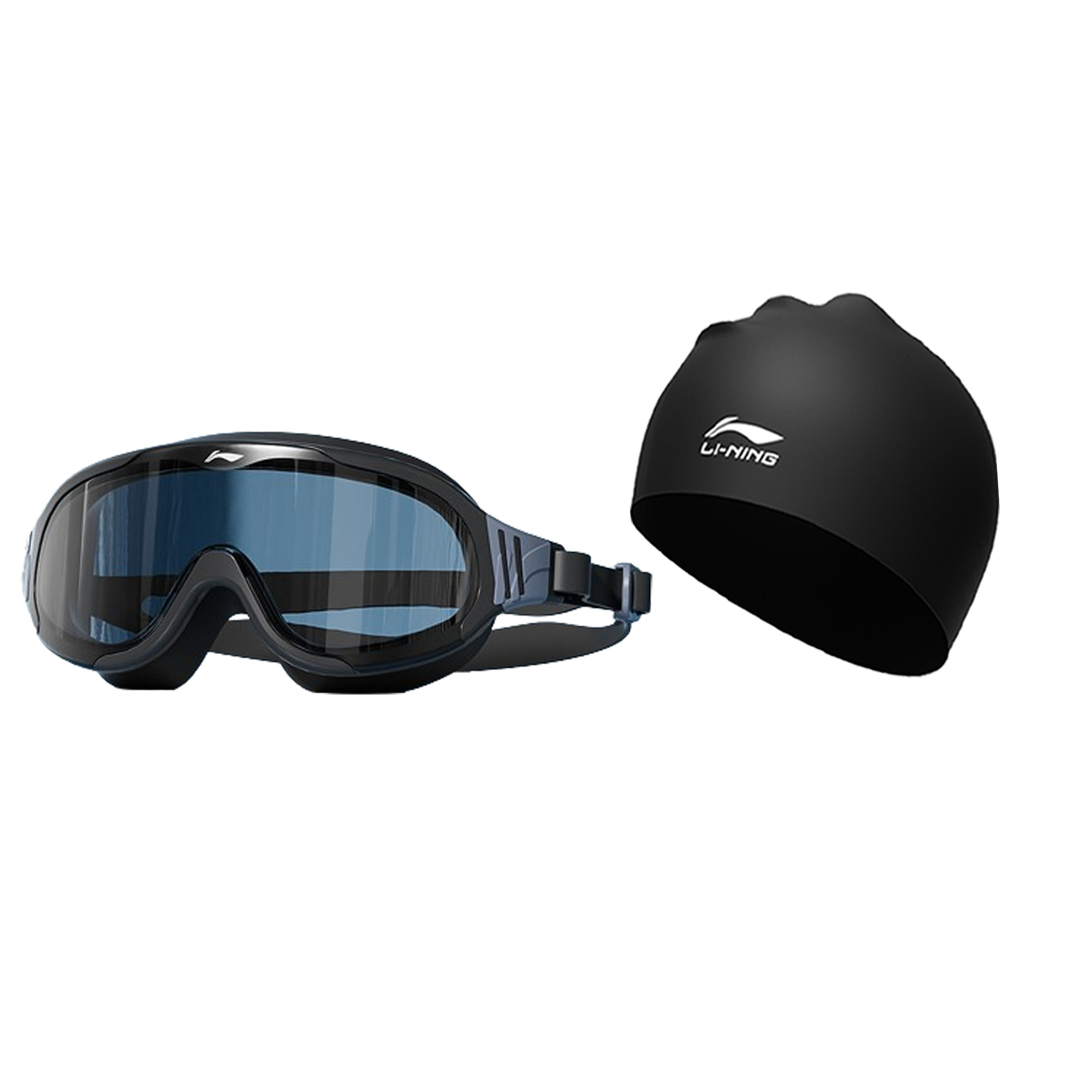 Коробка/набор: черные очки для плавания + светло-голубая шапочка для плавания
