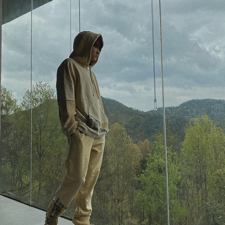 Классические элементы клетчатого узора переосмыслены здесь, простые, но стильные, придавая изделию завершающий штрих. Сочетание минималистичных и ретро-деталей, выцветшая и потертая отделка придают светло-голубому оттенку более современную эстетику, тонко раскрывая модную изобретательность в элегантном и простом дизайне. Нерегулярные клетчатые узоры, соединенные с вафельной тканью, создают эффектную деталь на брюках, демонстрируя точное чувство стиля и умело обогащая общую многослойность образа, добавляя яркий модный элемент.
