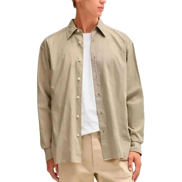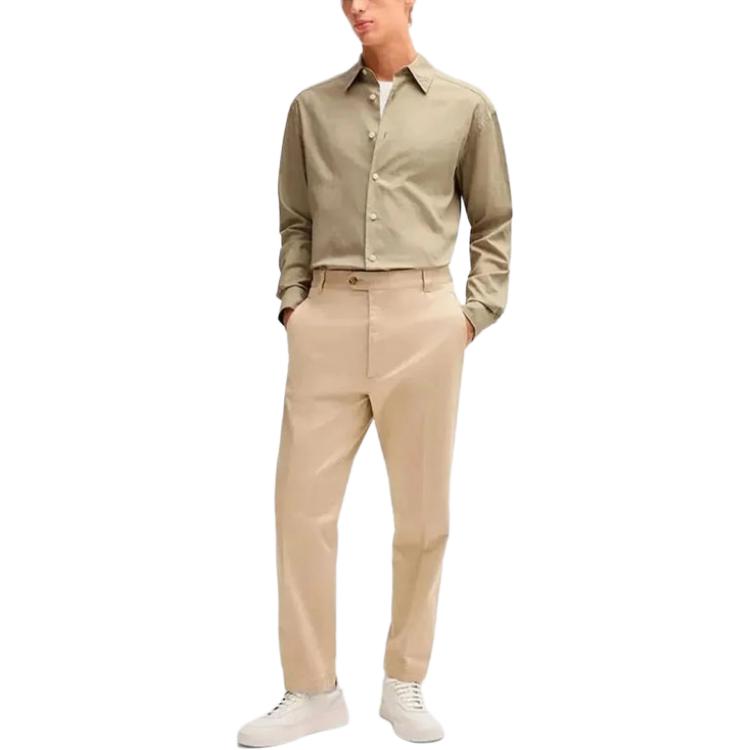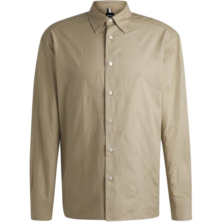 Боссовая хлопковая рубашка HUGO BOSS, бежевый