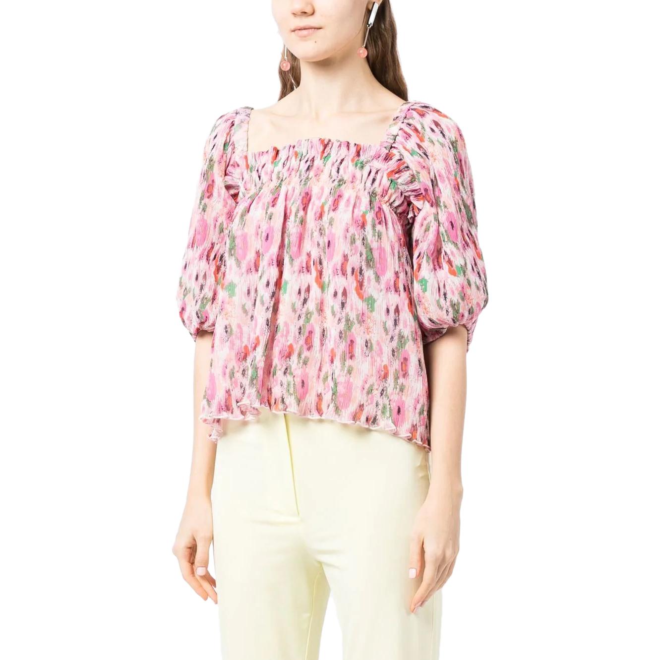 Топ-блузка с цветочным принтом GANNI, розовый