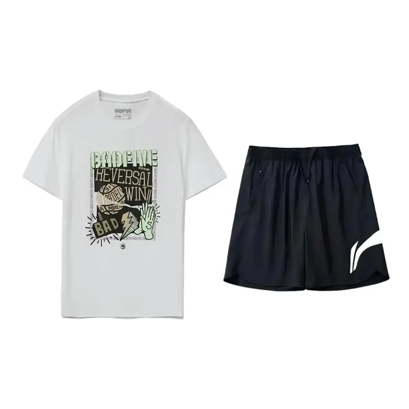 Комплект: базовая белая рубашка с короткими рукавами + черные спортивные шорты