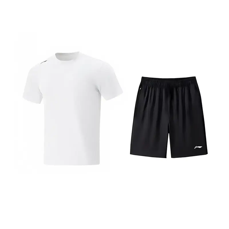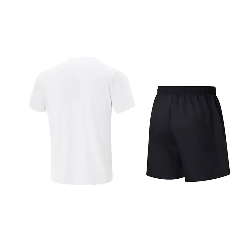 Комплект: белая быстросохнущая рубашка с короткими рукавами и логотипом на плече + быстросохнущие шорты с маленьким логотипом и карманом на молнии