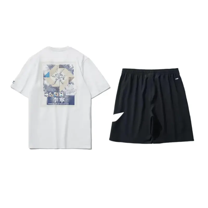 Комплект: белая рубашка с короткими рукавами + черные спортивные шорты