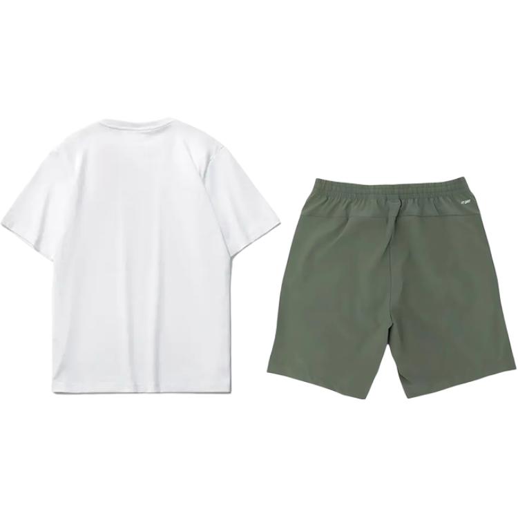 Комплект: комплекты одежды (белая футболка с короткими рукавами и шорты цвета тимьяна)