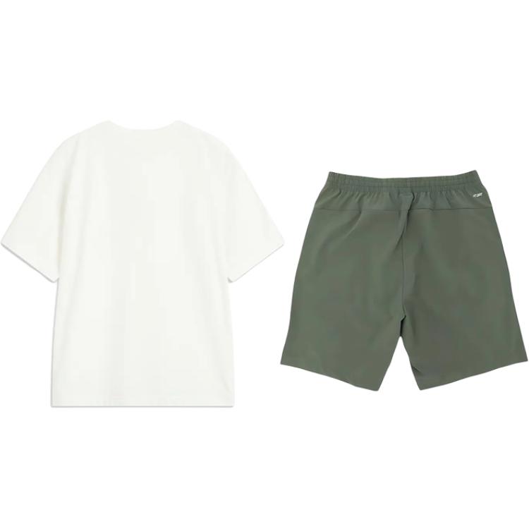 Комплект: рубашка цвета слоновой кости с короткими рукавами и спортивные шорты цвета тимьяна