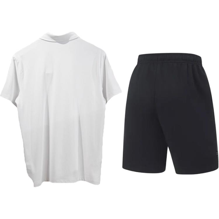 Комплект: стандартная белая быстросохнущая рубашка-поло с короткими рукавами + черные спортивные штаны