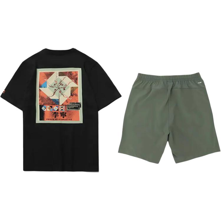 Комплект: черная рубашка с короткими рукавами и спортивные шорты цвета тимьяна