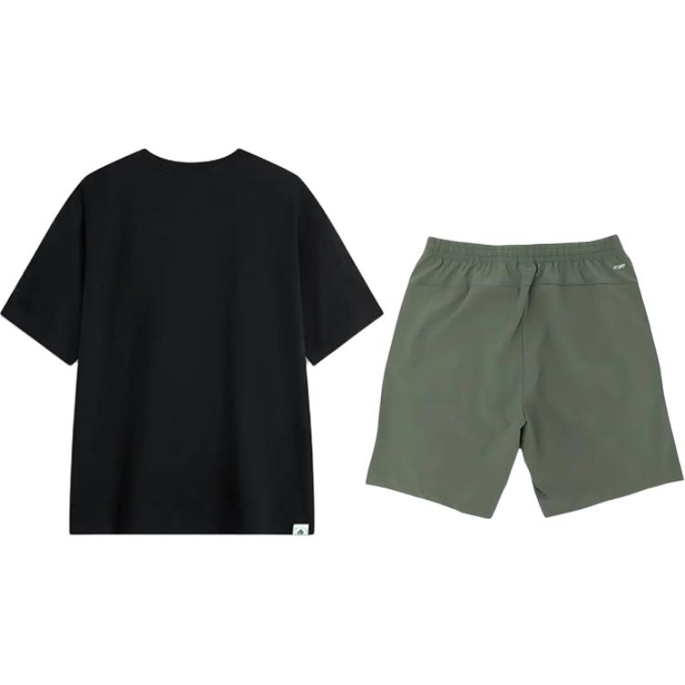 Комплект: черная рубашка с короткими рукавами и спортивные шорты цвета тимьяна
