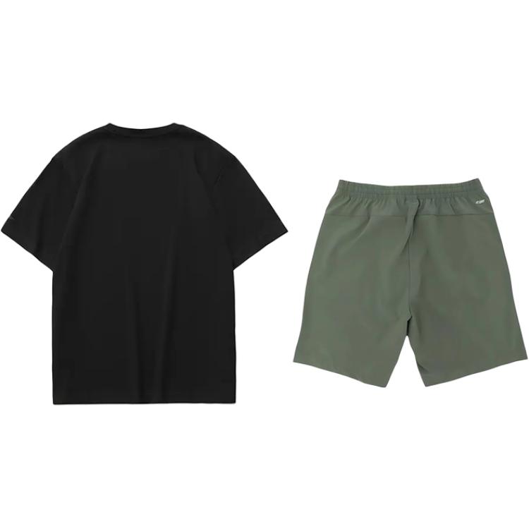 Комплект: черная рубашка с короткими рукавами и спортивные шорты цвета тимьяна