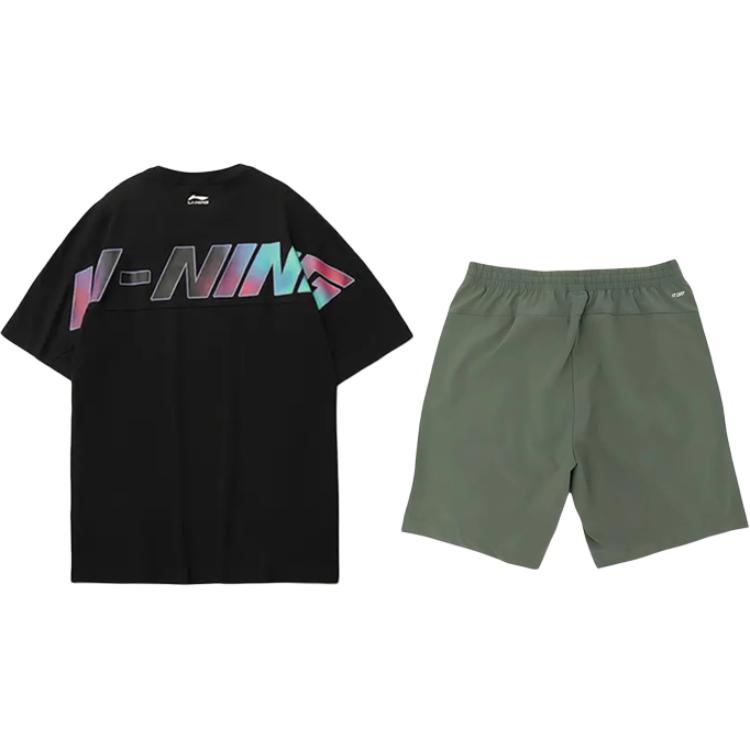 Комплект: черная рубашка с короткими рукавами и спортивные шорты цвета тимьяна