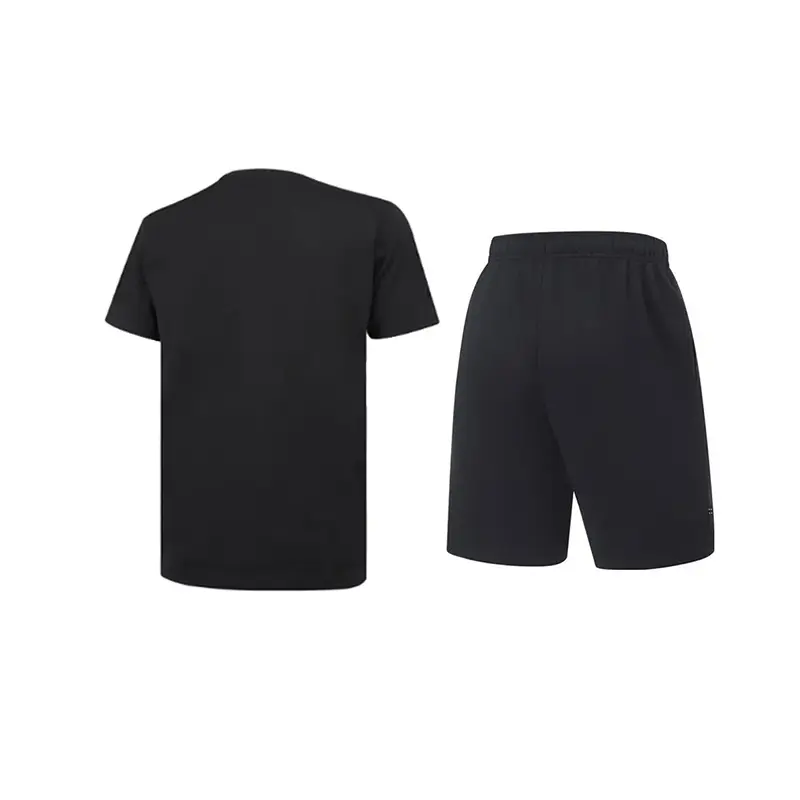 Комплект: черная рубашка с короткими рукавами и черные короткие спортивные штаны.