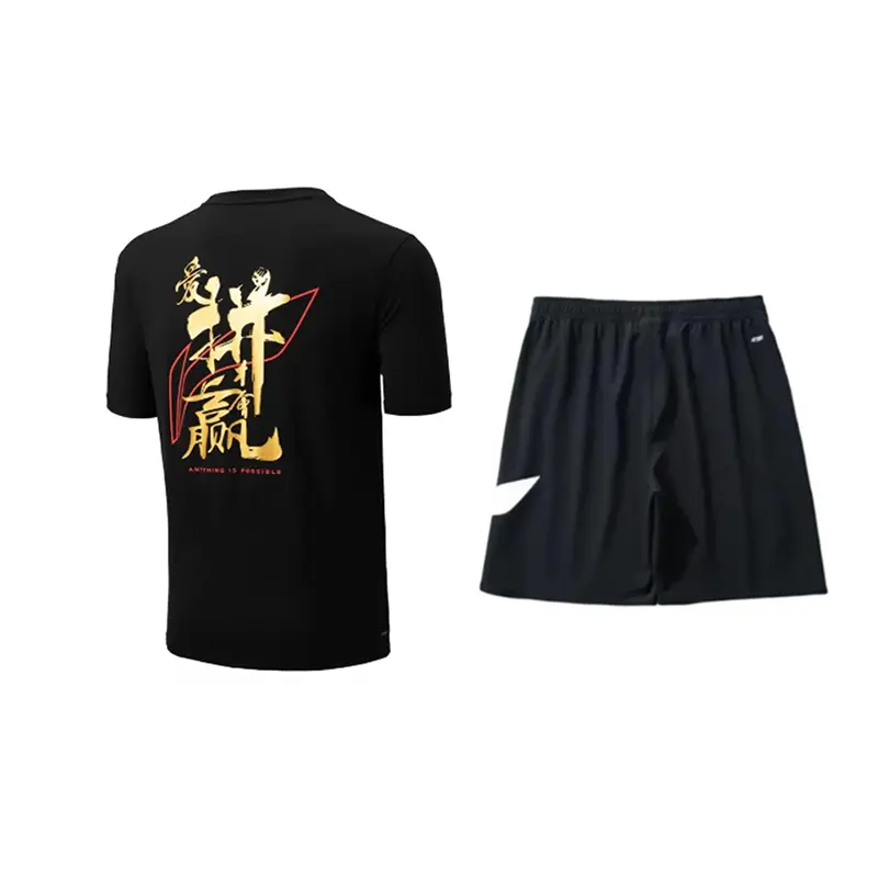 Комплект: черные футболки с короткими рукавами + черные спортивные шорты