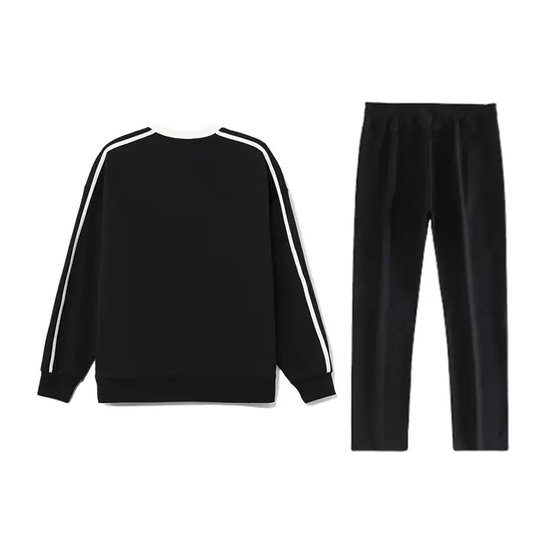 Комплект: черный свитер с капюшоном + черные спортивные брюки прямого кроя