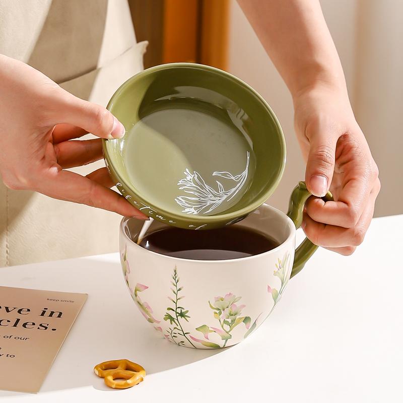 Цвет: [Парные чашки, 2 шт.] Розовый колокольчик + Зеленая лилия