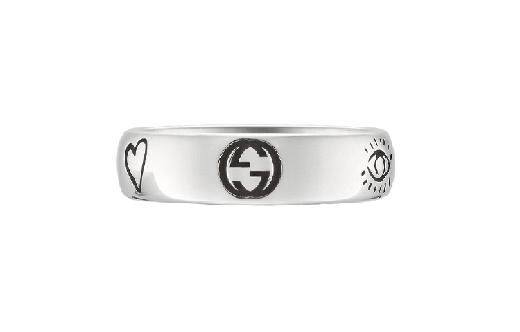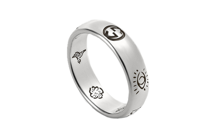 Это серебряное ювелирное изделие имеет антикварную отделку, придающую ему винтажный вид. Наличие следов такой отделки на изделии является нормой. Это узкое кольцо из стерлингового серебра с гравировкой культового мотива Gucci, включающего глаза, сердца, птиц, цветы и переплетенную букву G. Обратите внимание: подарочные пакеты двух размеров: 17*29*11 см и 11*17*6 см, будут отправлены случайным образом.