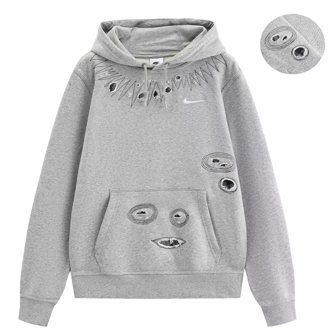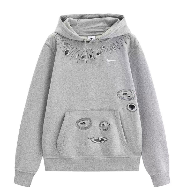 Эта индивидуально спроектированная вещь представляет собой оригинальную флисовую толстовку с капюшоном и длинными рукавами с однотонным логотипом бренда Nike. Она теплая и уникальная, а ее потертый дизайн делает ее модной и универсальной.
