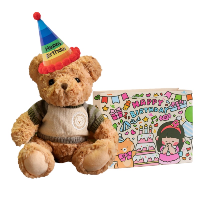 Цвет: светло-коричневый + праздничная шапочка + подарочный пакет на день рождения