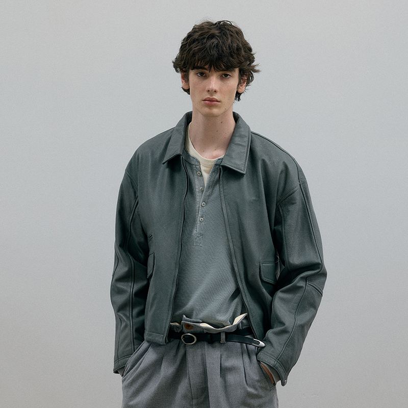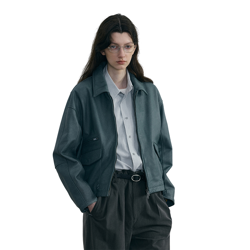 Упрощенная кожаная куртка Unisex C2H4, серый