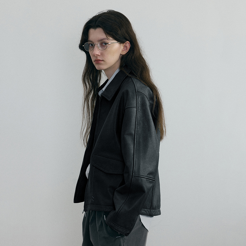 Упрощенная кожаная куртка Unisex C2H4, серый 47 319₽