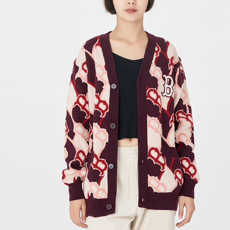 MLB Старый цветочный свитер унисекс бордовый