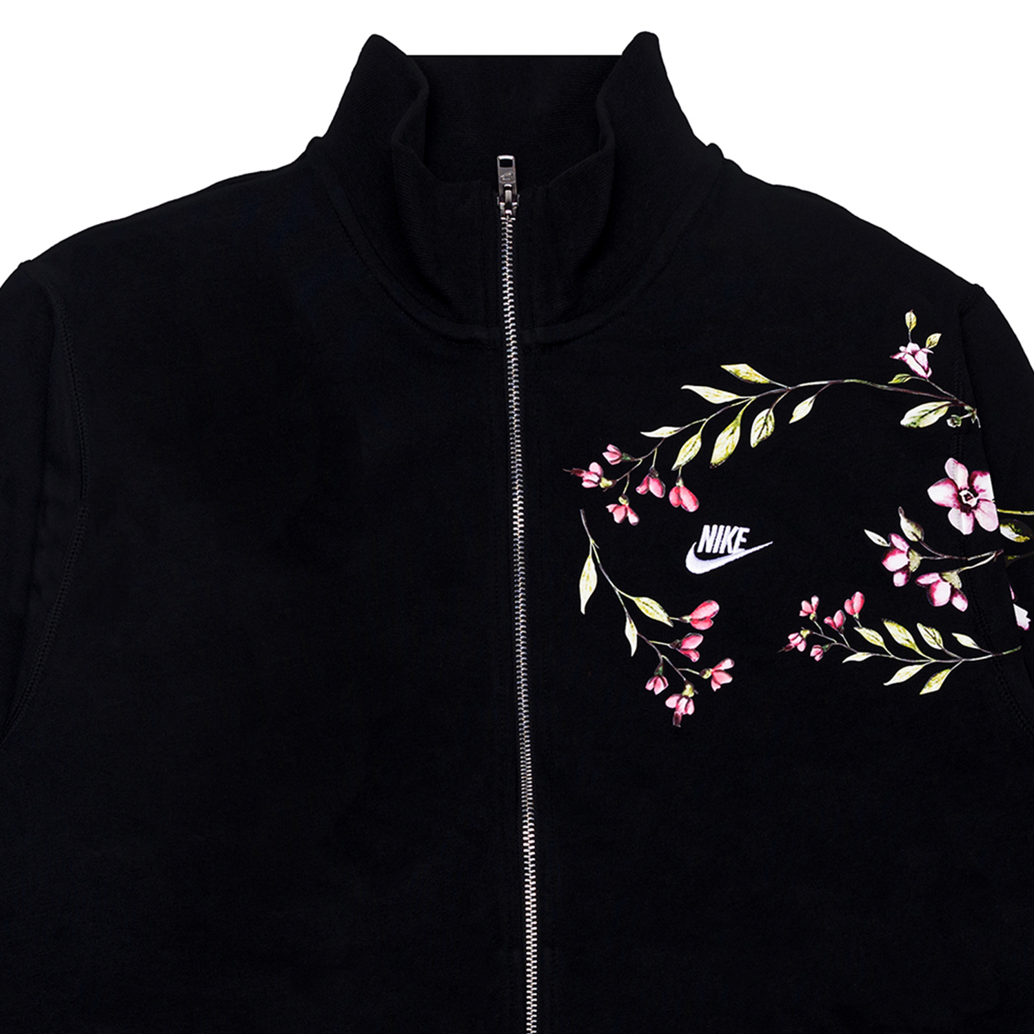Оригинальная модель - куртка с длинными рукавами и вышитым логотипом Nike Club. В дизайне преобладает цветочный принт - свежий и естественный, он понравится любителям растений.