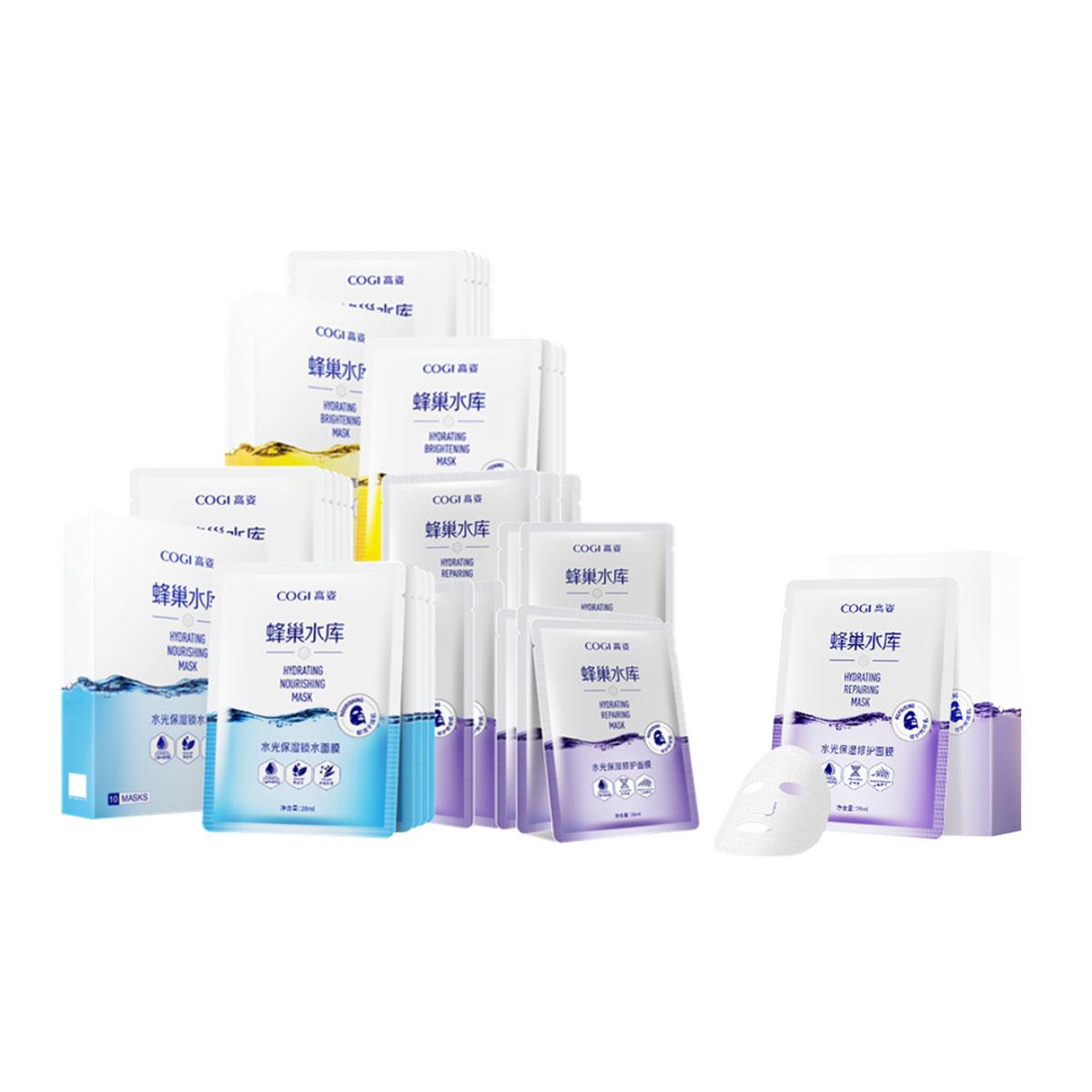 Характеристики: набор из трех предметов: восстанавливающая маска для лица (20 шт.) + увлажняющая маска для лица (10 шт.) + осветляющая маска для лица (10 шт.)