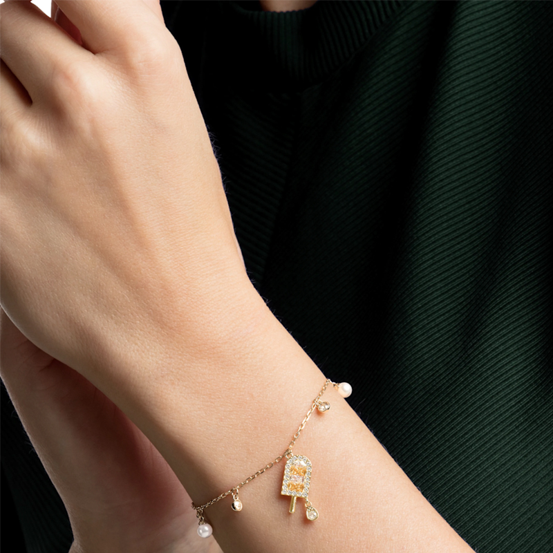 Это игривое и стильное ожерелье No Regrets добавит индивидуальности вашему образу и наполнит его летним праздничным настроением. Его универсальный дизайн включает украшение в форме мороженого, сочетающее позолоченный металл с сверкающими кристаллами Swarovski. Оно идеально сочетается с другими ожерельями, создавая глубину и добавляя яркий акцент любому наряду.