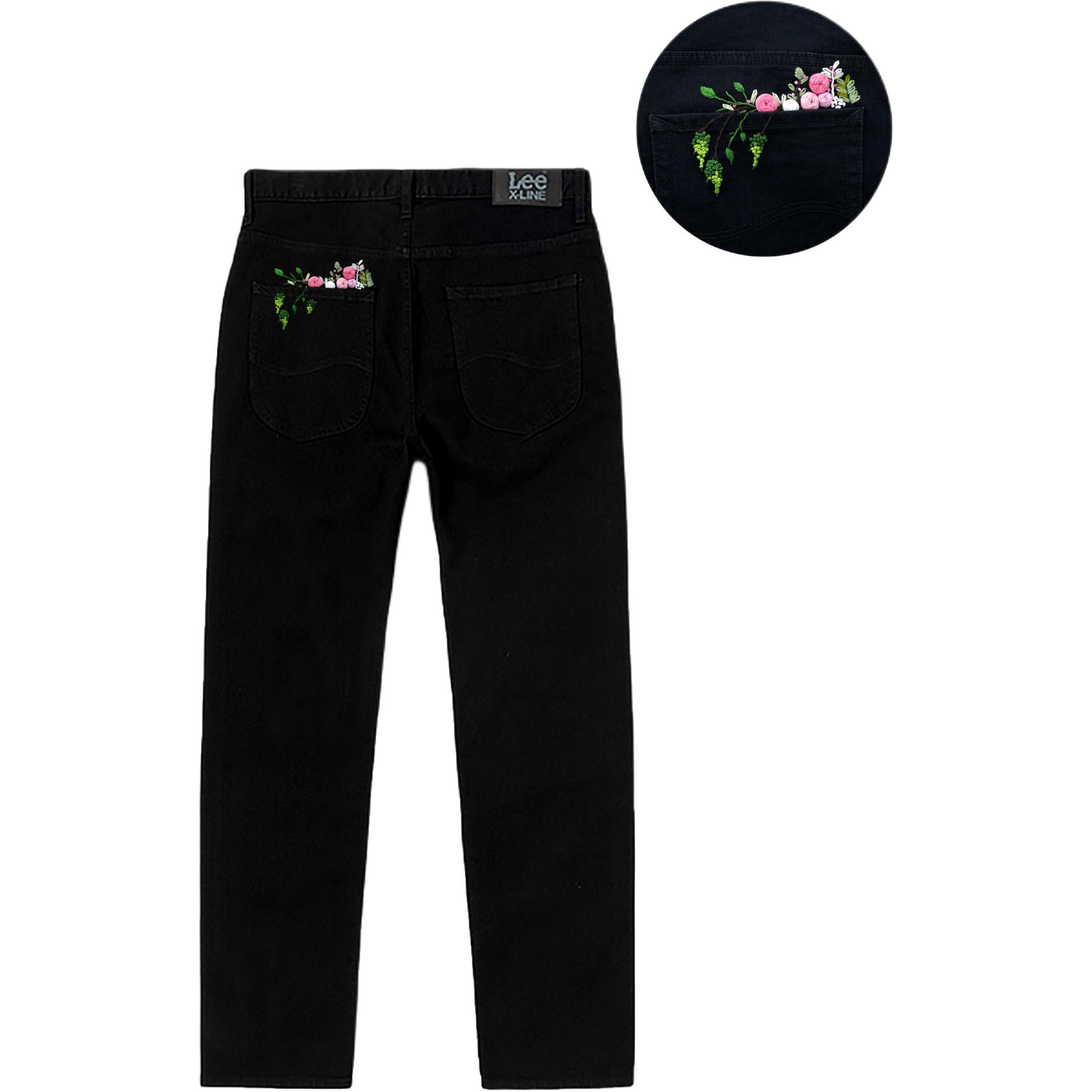 Этот сшитый на заказ предмет одежды представляет собой мужские джинсы Lee 731 Fall/Winter Comfort Mid-Rise Tapered Jeans для мужчин, черный. Оба номера товаров будут отправлены случайным образом, с небольшими различиями в логотипе на спине. Дизайн включает в себя оригинальный вышитый вручную узор из розовых роз и зеленых гиацинтов, символизирующих романтическую любовь и жизненную силу весны. Он источает модный, трендовый и уличный стиль, что делает его очень уникальным и значительно снижает вероятность того, что кто-то наденет такой же наряд, как у кого-то другого. Небольшие вариации в размещении узора могут быть между разными предметами одежды. В связи с особенностями мастерства и материалов, его следует беречь от острых предметов, длительного замачивания и сушки при высоких температурах.