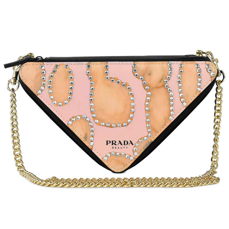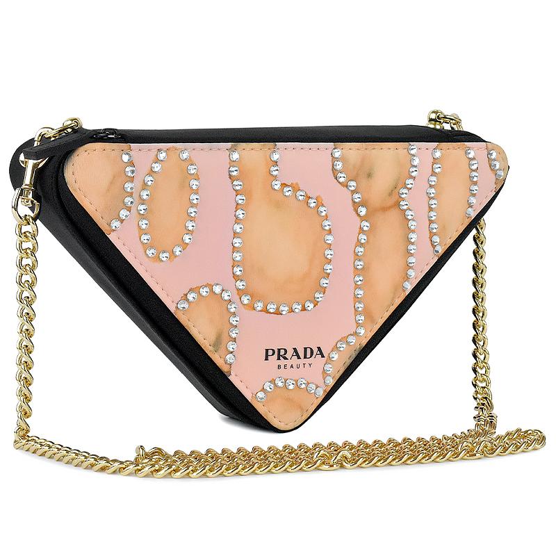 Эта сумка-шар, изготовленная на заказ, изготовлена на основе оригинальной треугольной косметички Prada, в которую удобно помещать косметические принадлежности. Избегайте царапин от острых предметов, длительного замачивания и сушки при высоких температурах.