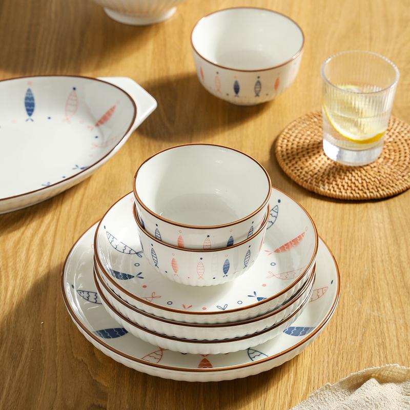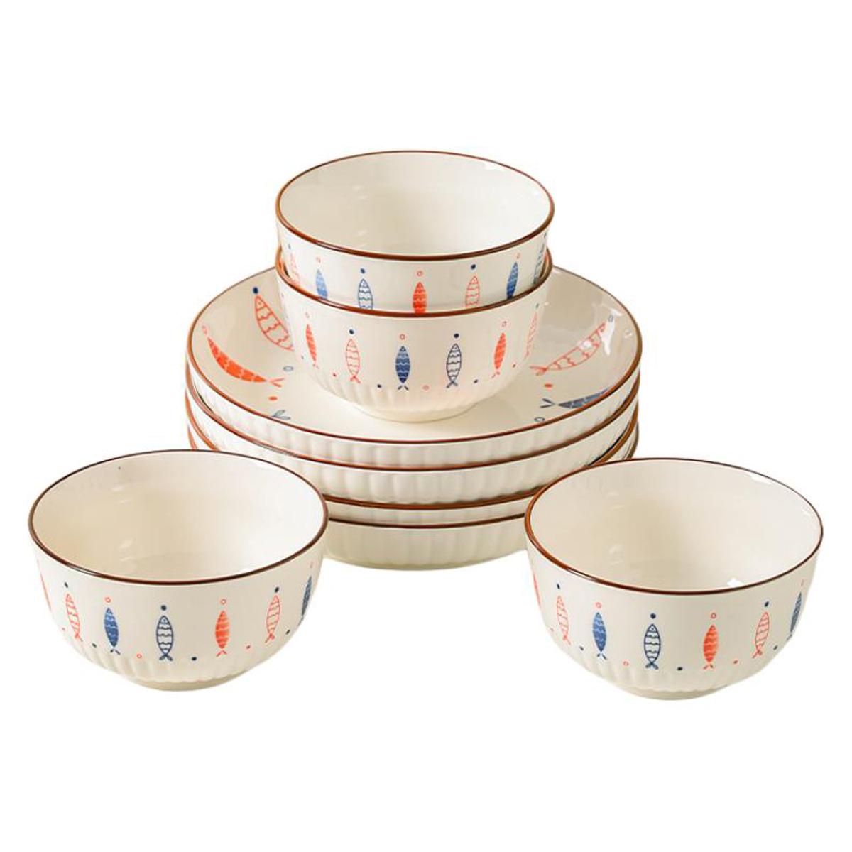 Комплект: 4 миски для риса диаметром 4,5 дюйма + 4 глубокие тарелки диаметром 7 дюймов