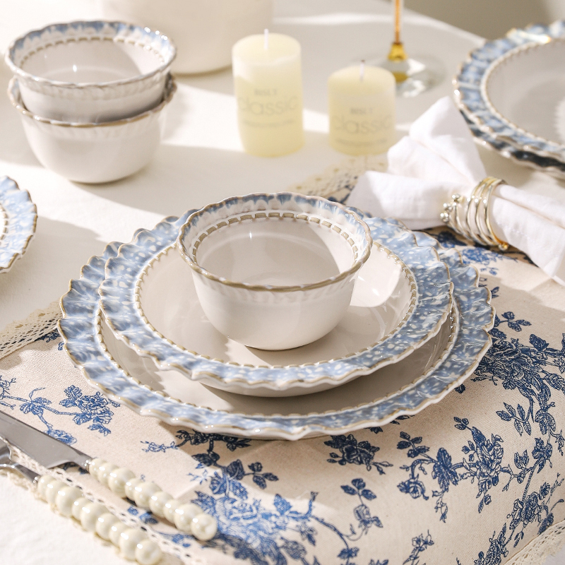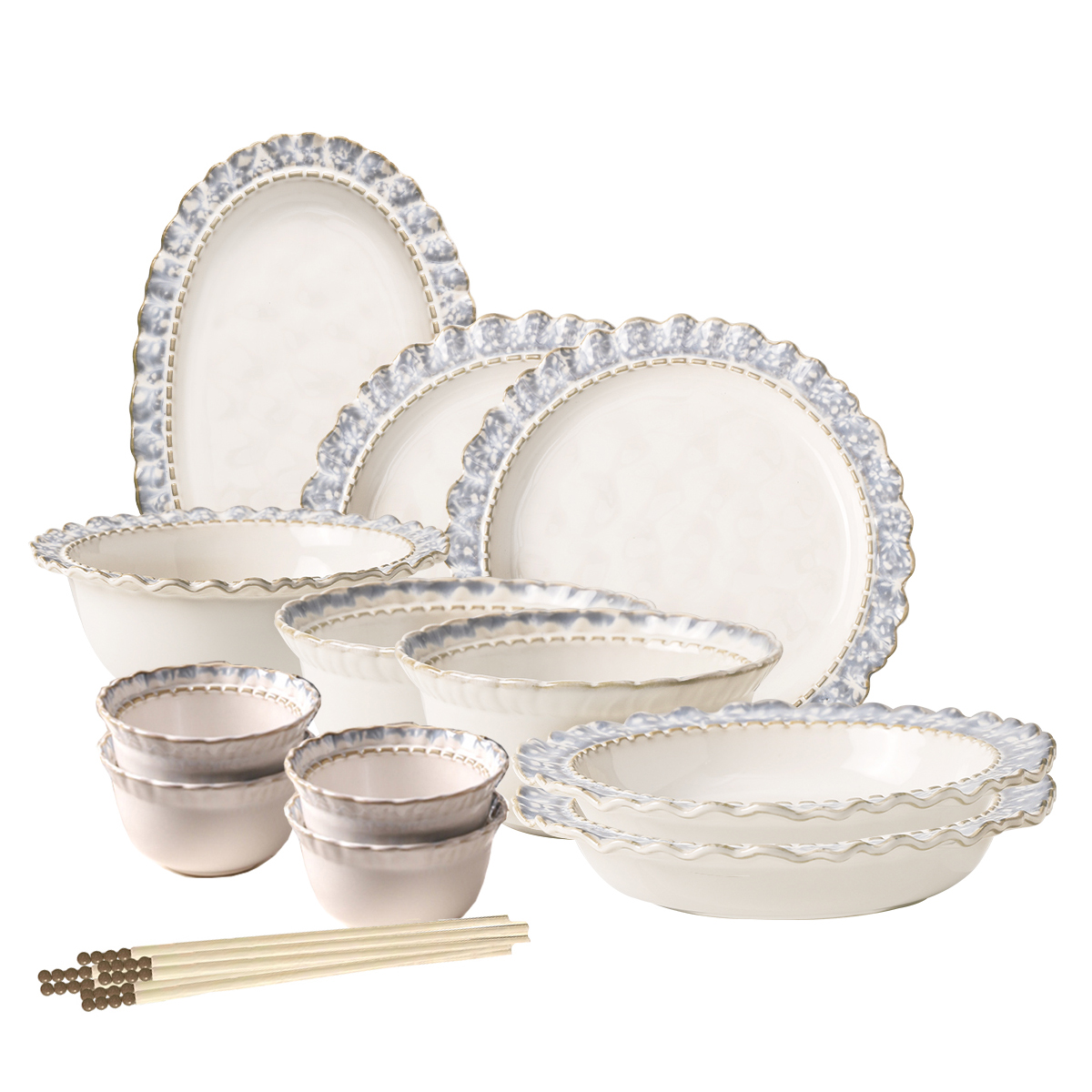Характеристики: Набор из 12 предметов дымчато-синего цвета на 4 персоны с палочками для еды.