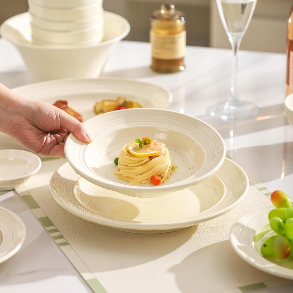 Набор: [Коробка] Обеденный сервиз в кремовом стиле на 4 персоны, 21 предмет, парные серьги, конфигурация в виде суповой чаши