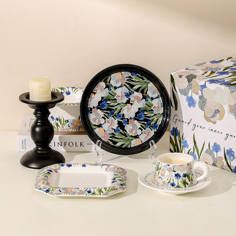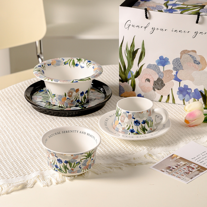 Набор: [Подарочная коробка + подарочный пакет] Обеденный набор из 3 предметов «Цветок ириса» на одну персону с палочками для еды (белый)