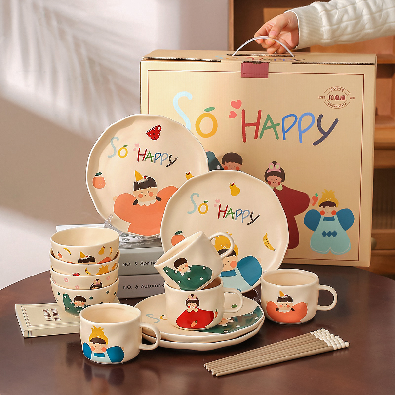 Набор: 【Подарочная коробка】Набор из 6 предметов на 2 персоны (детская версия) с палочками для еды