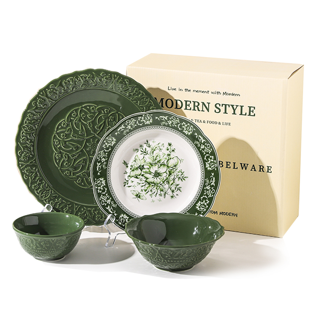 Набор: 【Подарочная коробка】Набор из 7 предметов на 2 персоны (зеленый) с 5 парами куриных крылышек и деревянными палочками для еды