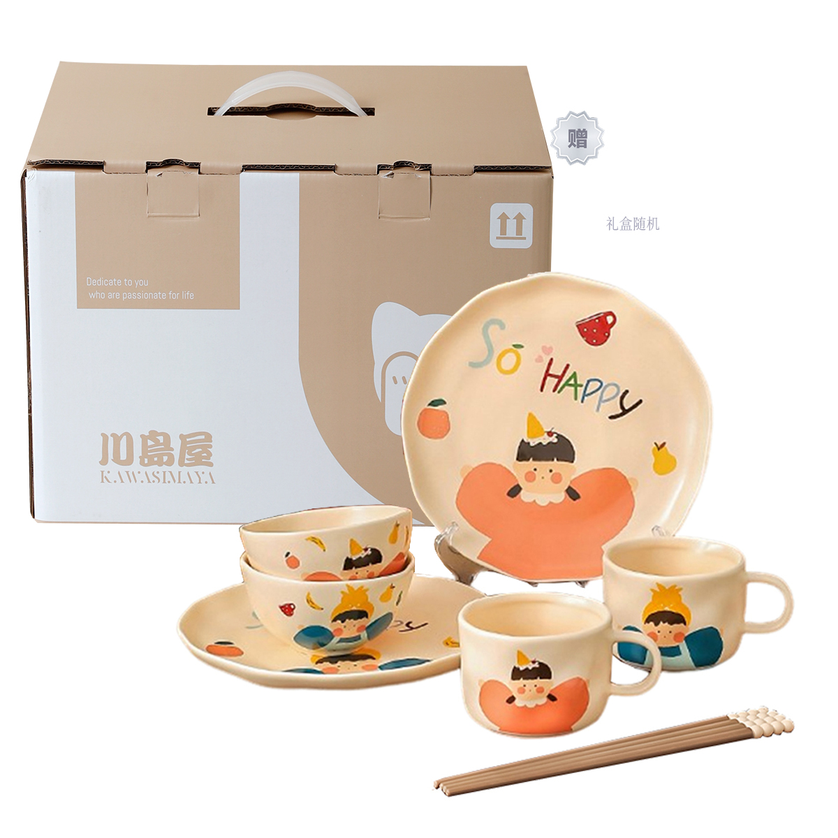 Набор: 【Подарочная коробка】Набор из 9 предметов (для девочек) с палочками для еды