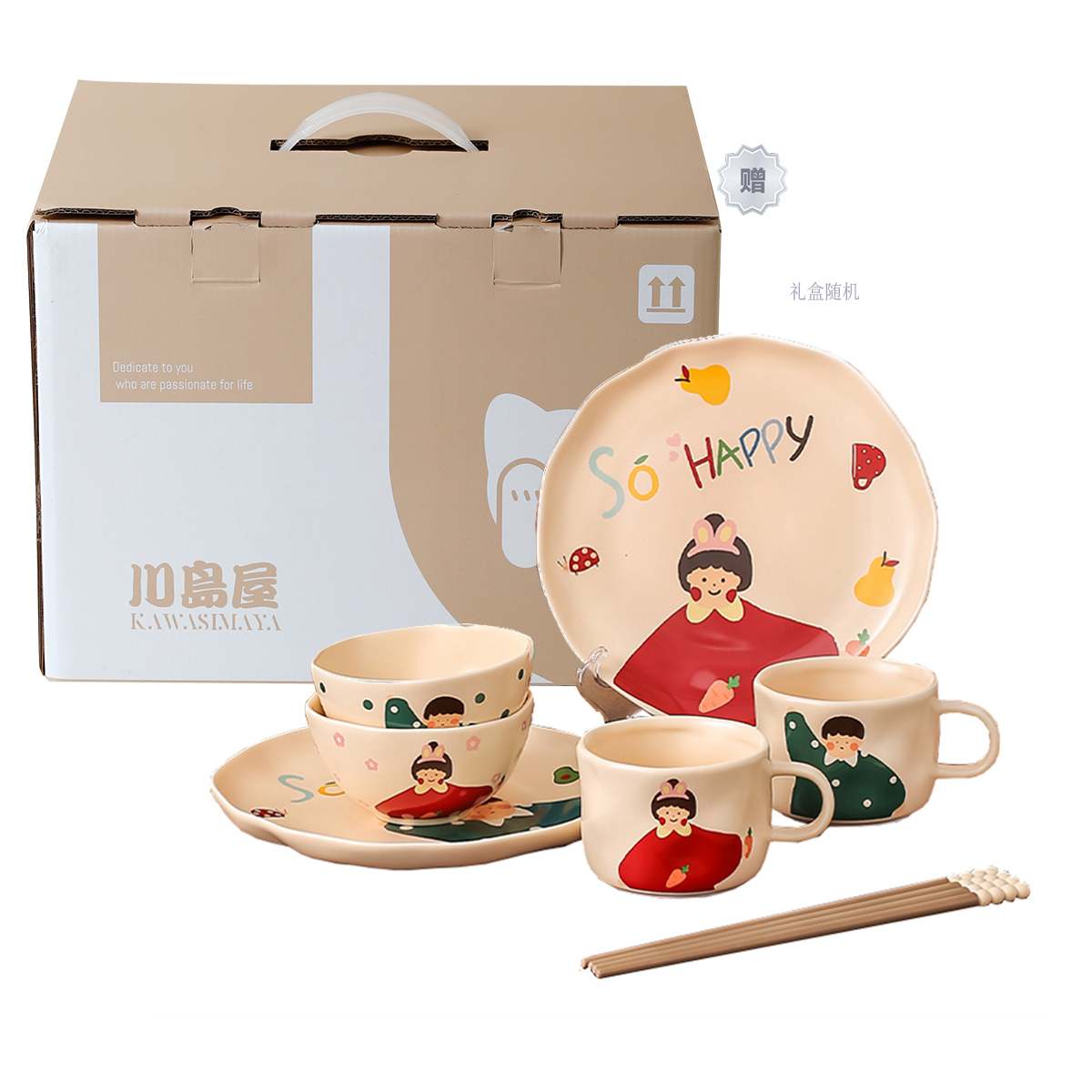 Набор: 【Подарочная коробка】Семейный набор из 12 предметов (для мальчиков и девочек) с палочками для еды.
