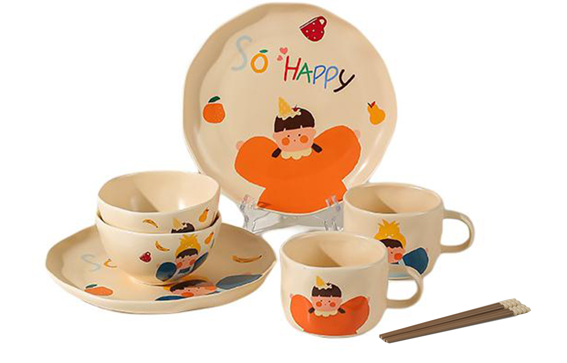 Набор: Семейный набор из 12 предметов (для мальчиков и девочек) с палочками для еды.