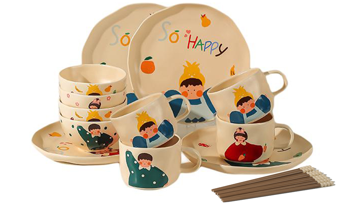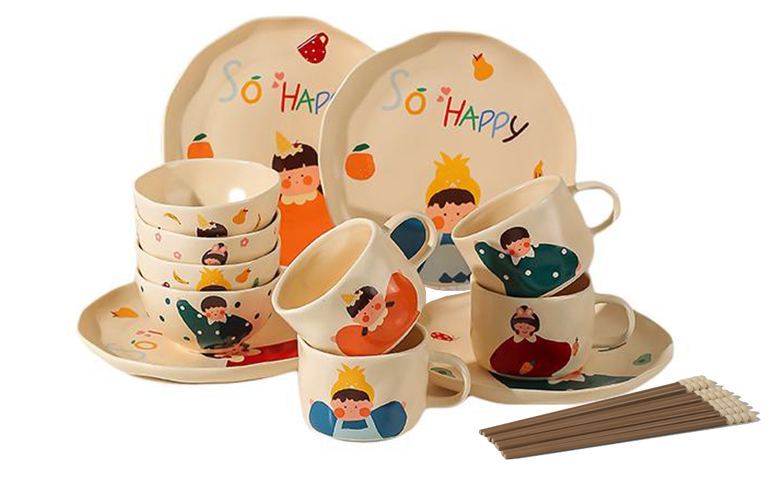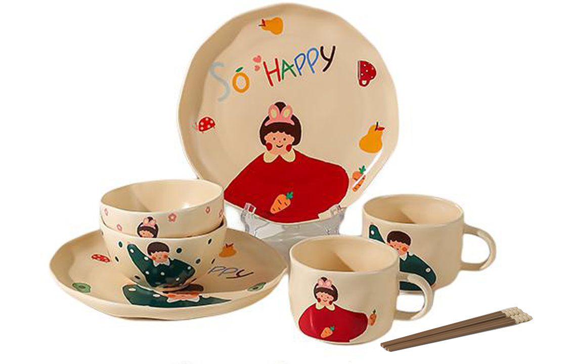 Набор: Семейный набор из 3 человек (для девочек) из 9 предметов с палочками для еды.