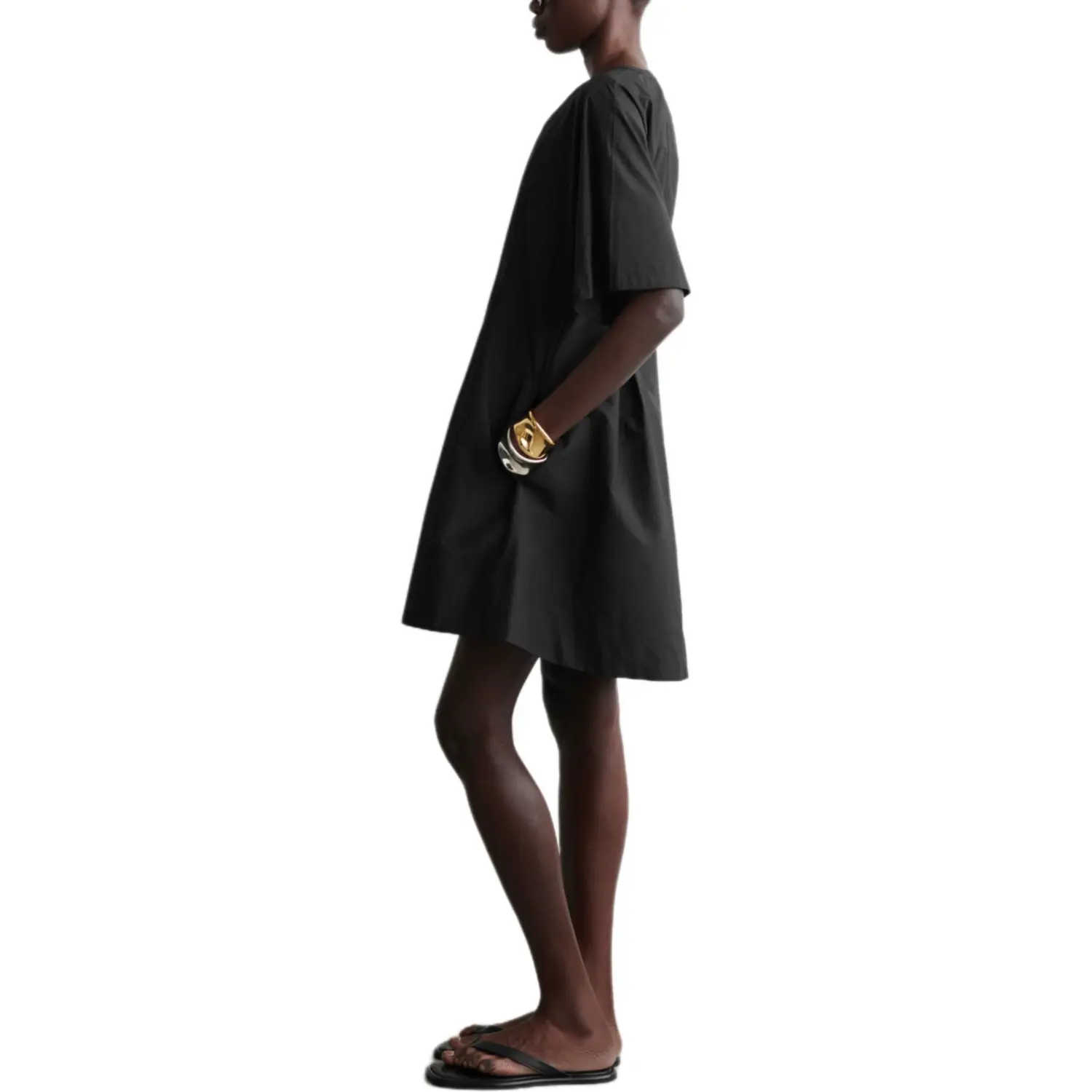 COS Женское черное платье с коротким рукавом