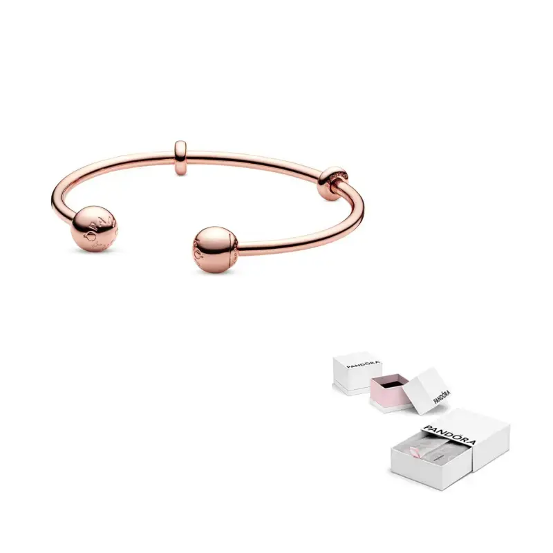 Наш браслет Pandora Rose с открытым верхом добавит стильный штрих к вашей коллекции, а простые силиконовые бусины-фиксаторы превратят его в прекрасный аксессуар. Уникальная полированная отделка медно-серебряного сплава излучает тепло и элегантность. Просто снимите застежку с логотипом, чтобы надеть шармы. Застежку можно легко заменить в зависимости от настроения.