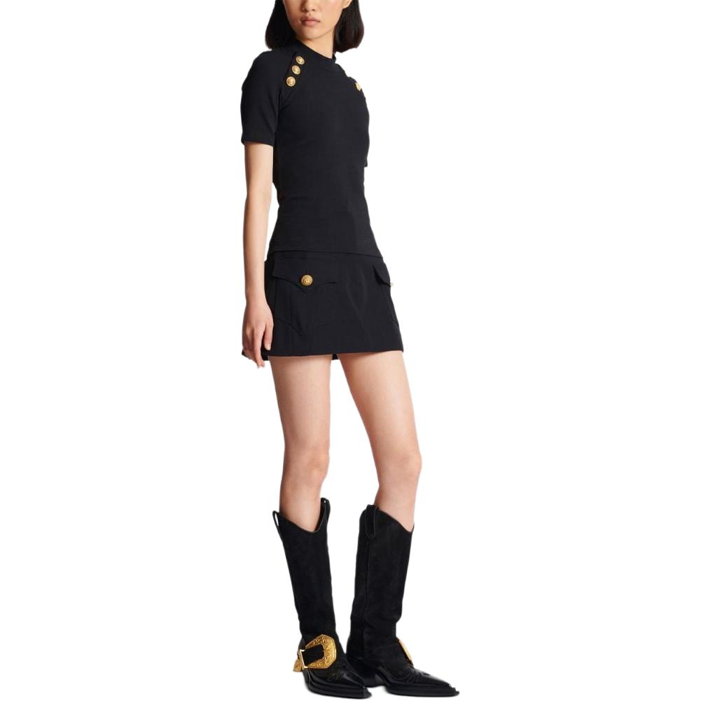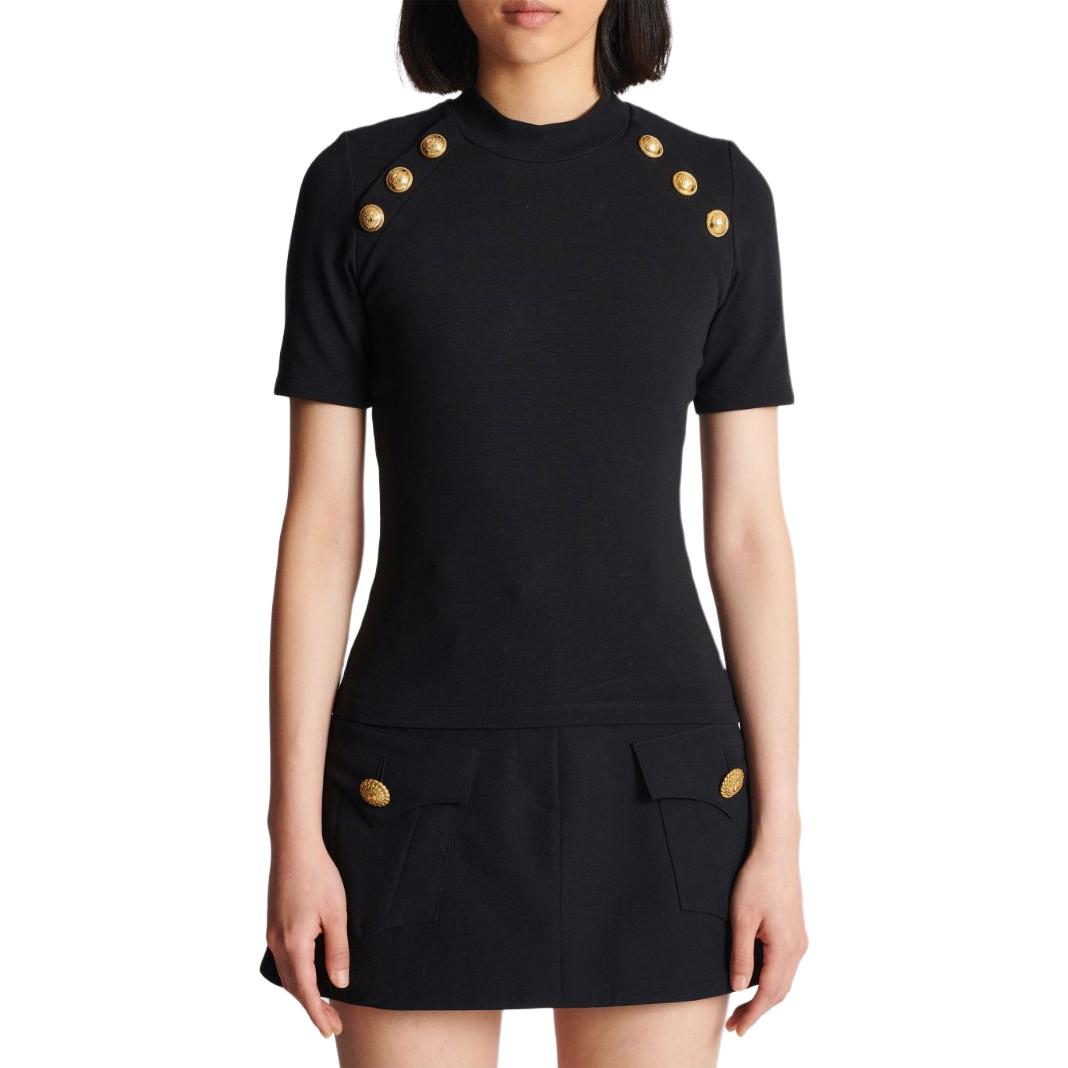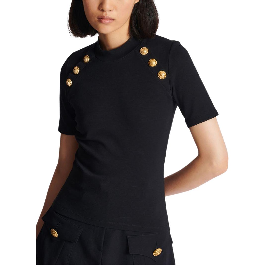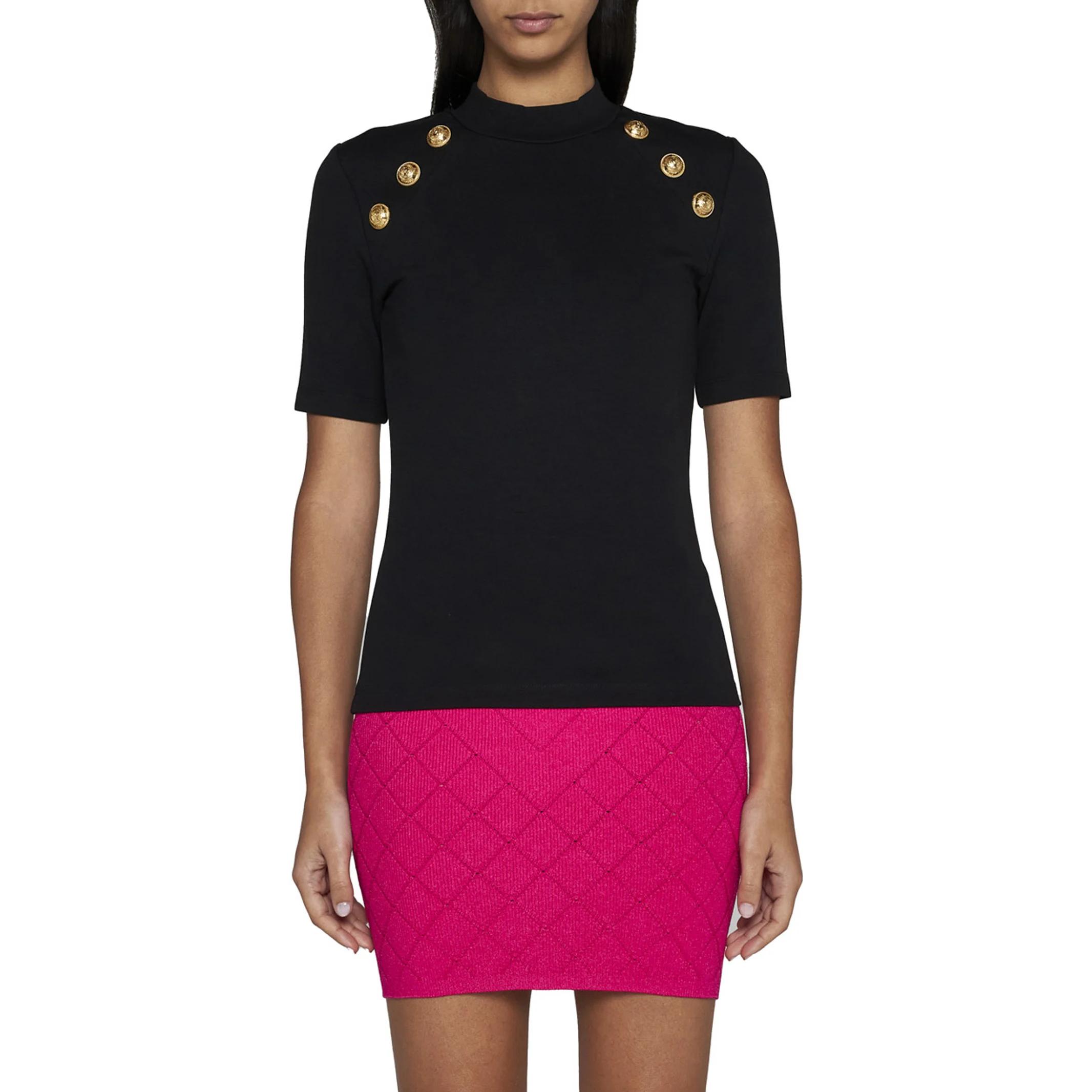Футболка-поло с 6 пуговицами BALMAIN, черный